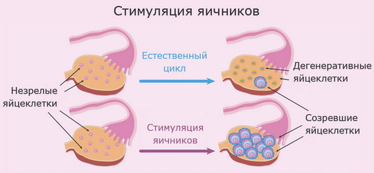 Основной этап — стимуляция суперовуляции. С помощью гормональных препаратов в яичниках женщины созревает не одна, а несколько яйцеклеток (в отличие от естественного цикла). Благодаря этому получают несколько эмбрионов, что значительно увеличивает шансы на успешную беременность.
