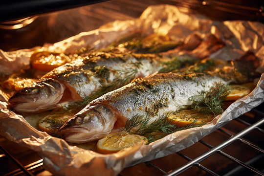 Духовка с конвекцией и без неё ведёт себя по-разному, и это необходимо учитывать. При принудительной циркуляции воздуха температуру снижают на десять-пятнадцать градусов относительно указанной в рецептуре, иначе поверхность рыбы схватится коркой, а внутри останется сырая область возле хребта. В электрических шкафах с верхним и нижним нагревом запекать лучше на среднем уровне, используя режим «низ плюс верх» без вентилятора.
